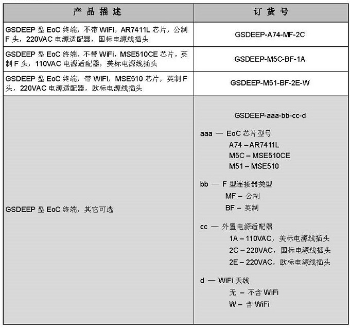 GSDEEP 配合同軸電纜以太網(wǎng)頭端設(shè)備,旨在通過有線電視用戶家中已有的同軸電 纜網(wǎng)絡(luò)在接收有線電視信號的同時可接入以太網(wǎng)數(shù)據(jù)信號。